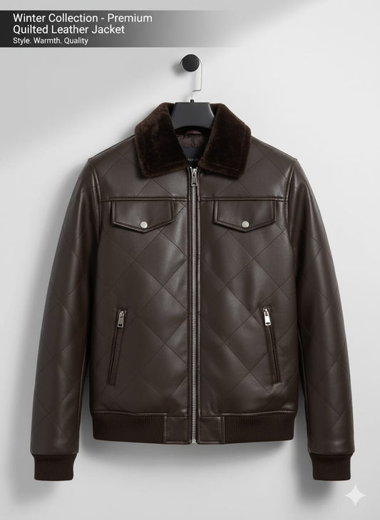 HOLLYWOOD-STYLE COFFEE BROWN DIAMOND-CUT LEATHER JACKET
